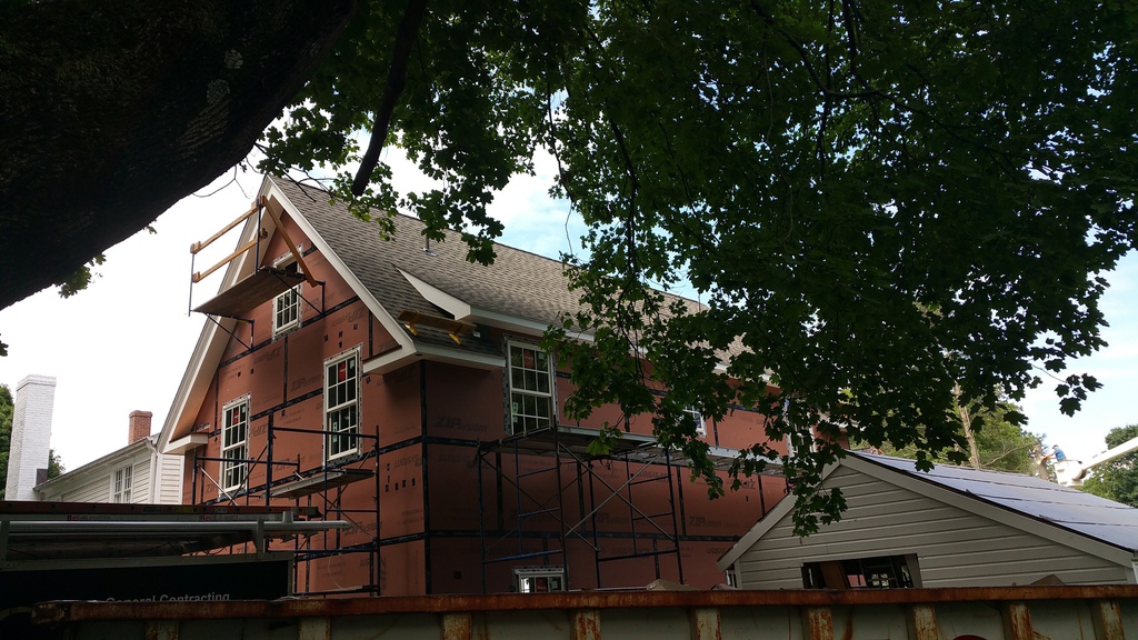 Addition to a historic 1800's home in Westport, CT. This project included the addition of 2 car garage with a small wood shop at the rear and in-law apartment above, a large entryway to connect the new structure with the original house, and many custom details along the way.